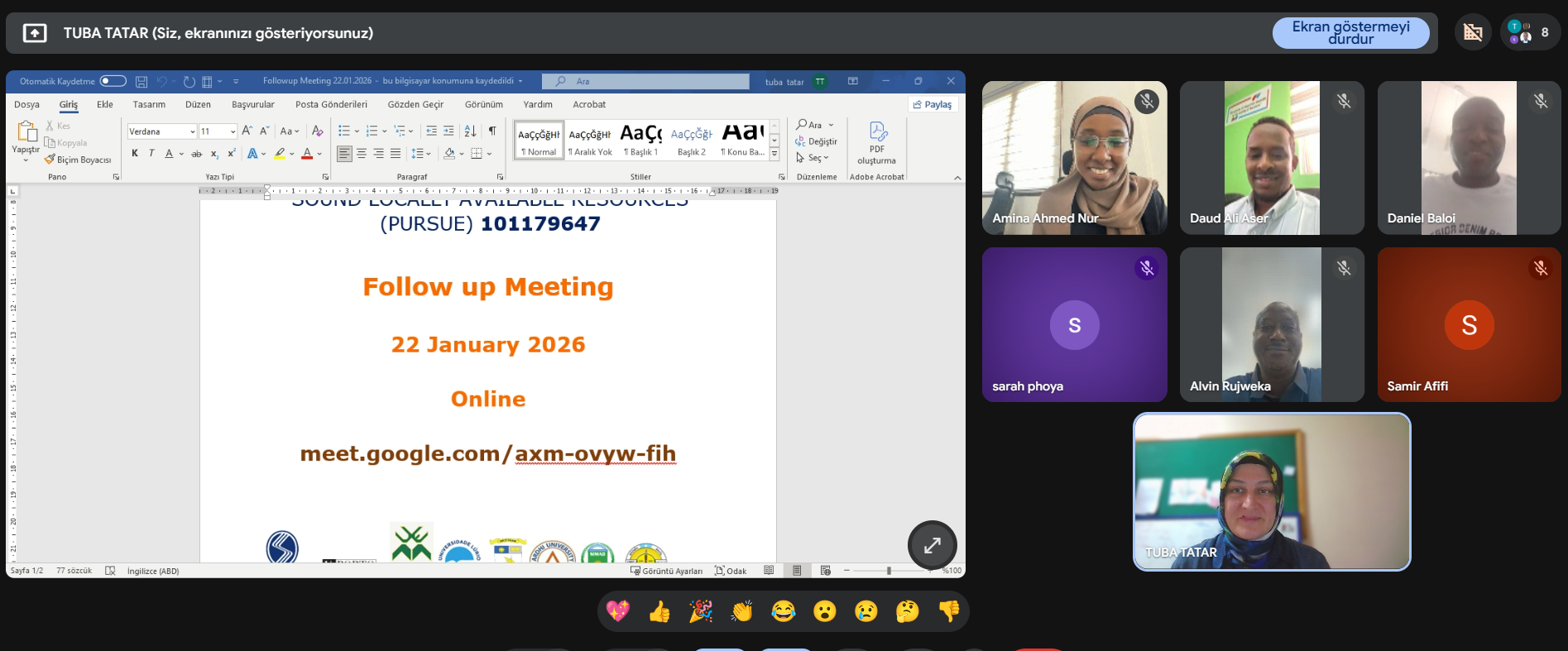 The PURSUE consortium held an online follow-up meeting on 22 January 2026 to coordinate field-visit reporting and immediate planning actions.